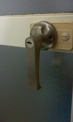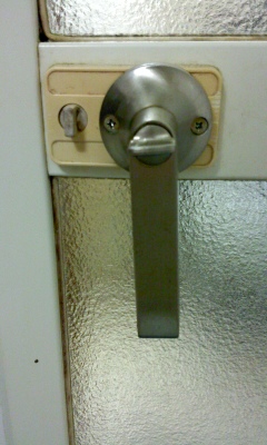 鍵までついた立派なステンレス製のレバー式ノブが!